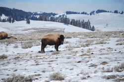 Spring time in the Yellowstone’s Lamar Valley. I saw a lot of wolves, bison and big horn sheep this trip. While I got a lot of those photos, the image of the bison in the snow while they wandered through the valley seemed so real western. I wanted the mountains and the snow in the background.