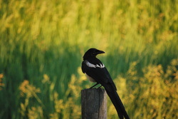 After a few years of chasing these elusive birds, I finally manged to get a lot of photos of this one magpie who had taken up a sentinel position on the fence post. He was guarding something he wanted to eat, and I was stalking him from around trees and the corner of the cabin.