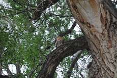This little one fell early, and when she did not move, she was carted off to the Raptor Rescue for nursing back to health. I am happy to report, she is doing fine and enjoys spending time in the trees with her mother and brother.