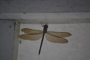 We had a lot of rain this summer, and because of that, there is a lot of standing water in our pond, a lot of flooding along the back of the yard and water puddles everywhere. There do not seem to be a lot of mosquitoes because we have hundreds and hundreds and hundreds of dragonflies everywhere! This one was hanging off the rail outside my office window, so I shot him with a 300 mm lens. He is not photoshopped in this picture; he was naturally sepia colored. The water is still with us from Hurricane Irma.