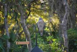 Our red shouldered hawk found a great place to park himself when he waited to see if any of the squirrels would be nosing around the bottom of the feeder. He is an opportunist if nothing else. He spent the morning watching all of the oak trees for squirrel activity. Funny thing is, not a single squirrel was to be found!