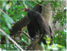 Here is what was going on. Apparently, this guy stopped in for a break and terrified the squirrels. He sat in the tree for about a half an hour, and that frozen squirrel never moved the whole time.