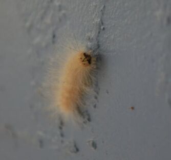 It is called a Laugher Moth Caterpillar because the adult moth appears to have a man laughing on the wings. I have seen the adults around, but I don’t see anything remotely close to a laughing man on the wings. They are more marbled in muted tones than anything.
